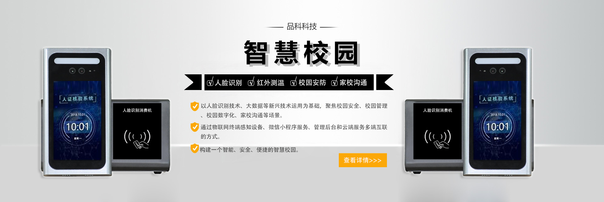 品科人臉識别智能消費系統通過在食堂和超市收銀處等消費地點安裝人臉識别售飯機然後與後台人臉數據庫進行實時對比,就能迅速完成識别,核算總價,完成扣款,整個過程在0.2s内皆可完成,系統在扣款的同時會将本次消費記錄同步發送給家長。